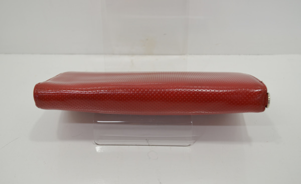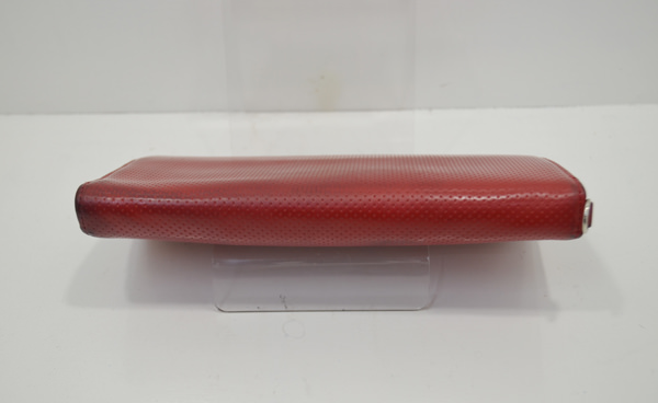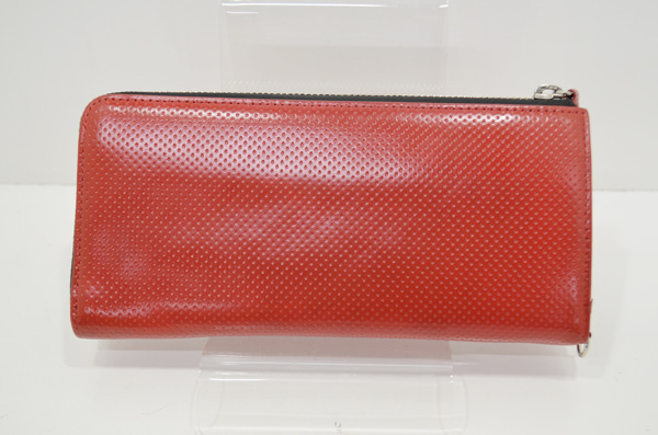 モータースポーツを彷彿とさせるスポーティーなデザインの財布ですね。特徴的な気泡の穴のようなデザインですが丁寧にクレンジングと補色作業で元の美しい赤色を復元していきました。